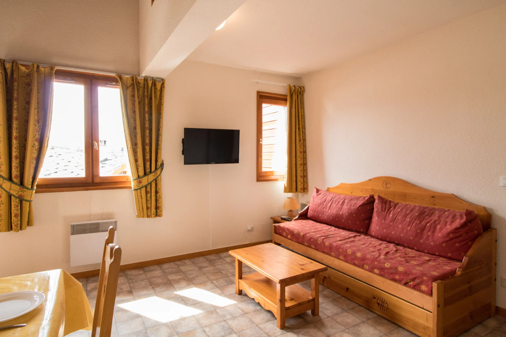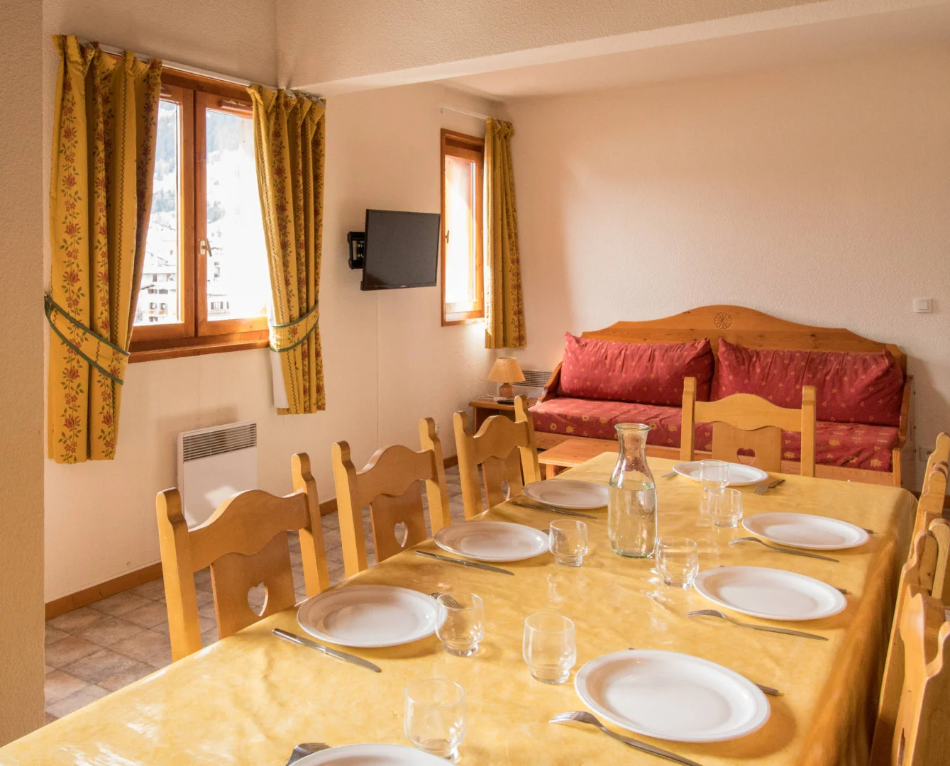 In Aussois, at the "La Combe II" residence, an enjoyable 58 sqm apartment for 8 people, near the summer leasure park, and 10' far from the slopes with a free ski bus.