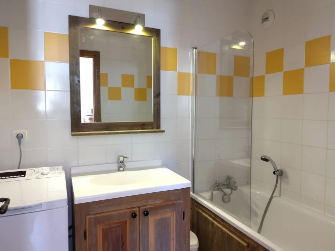 Bathroom: bathtub, sink, washing-machine. Separate toilet.
